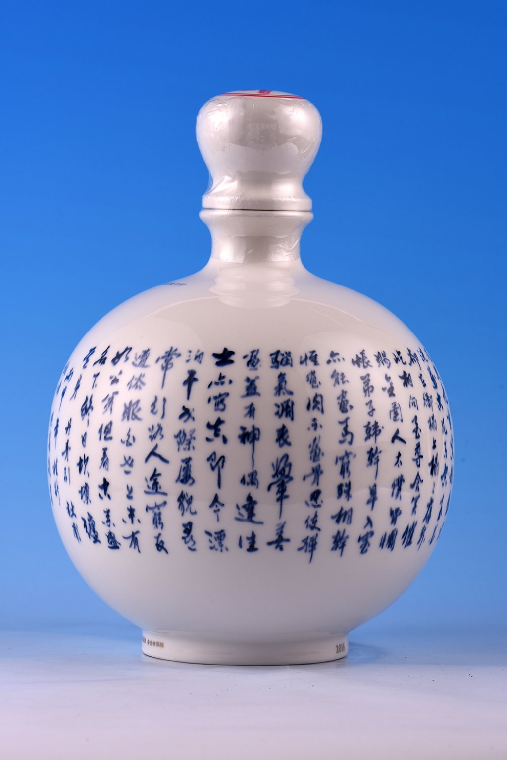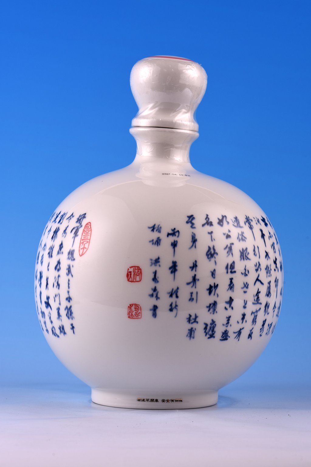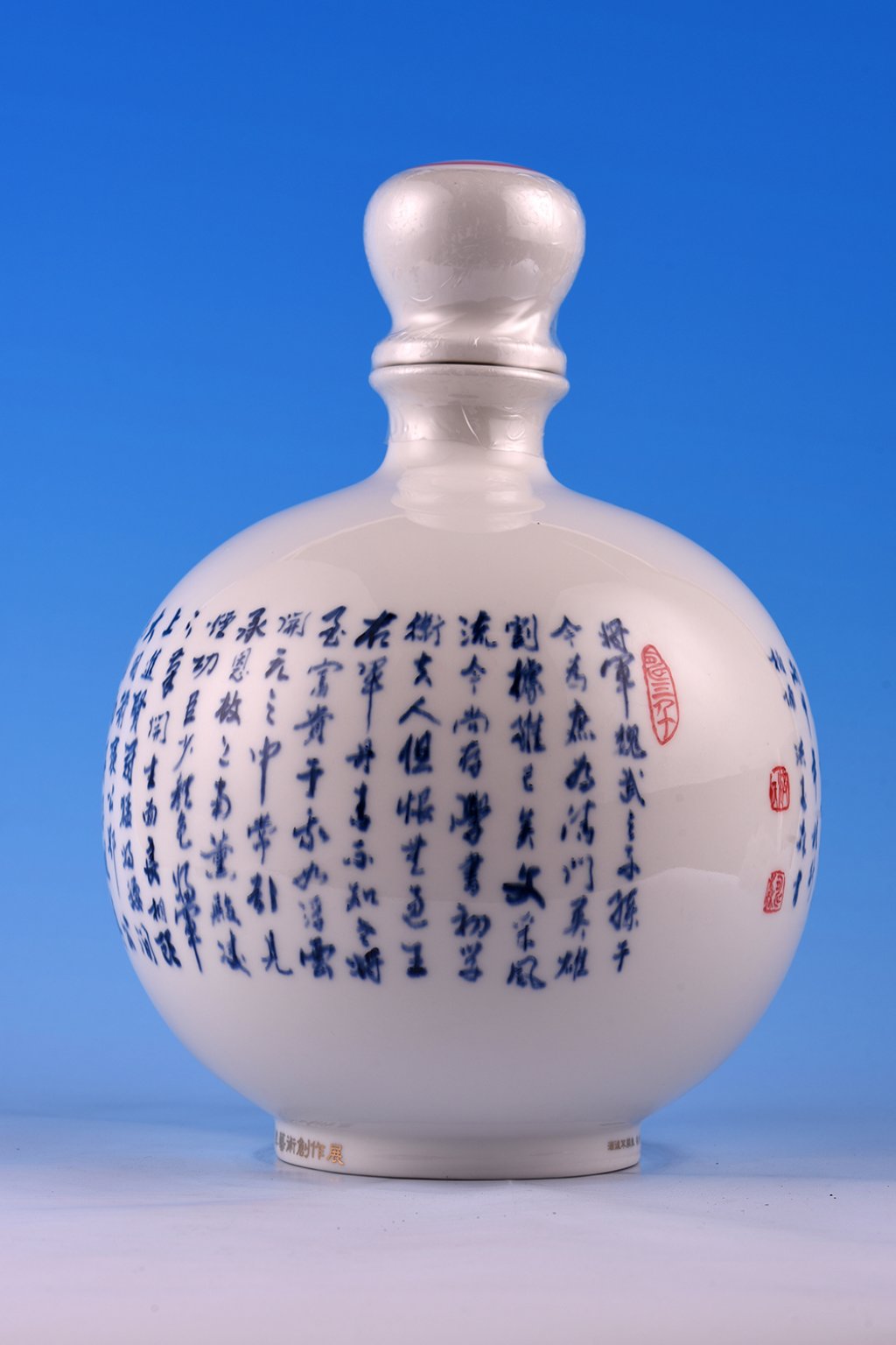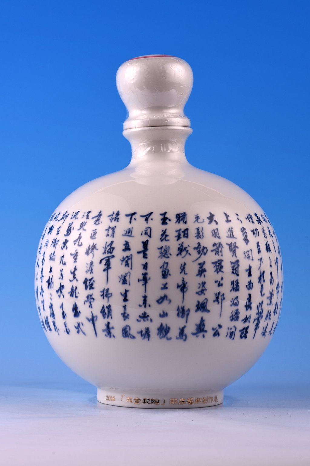 洪壽森手繪瓷瓶-杜 甫 ─ 丹青引贈曹將軍霸[高粱酒]彩墨藝術家企業家學者教授美術館典藏金門陶瓷廠釉