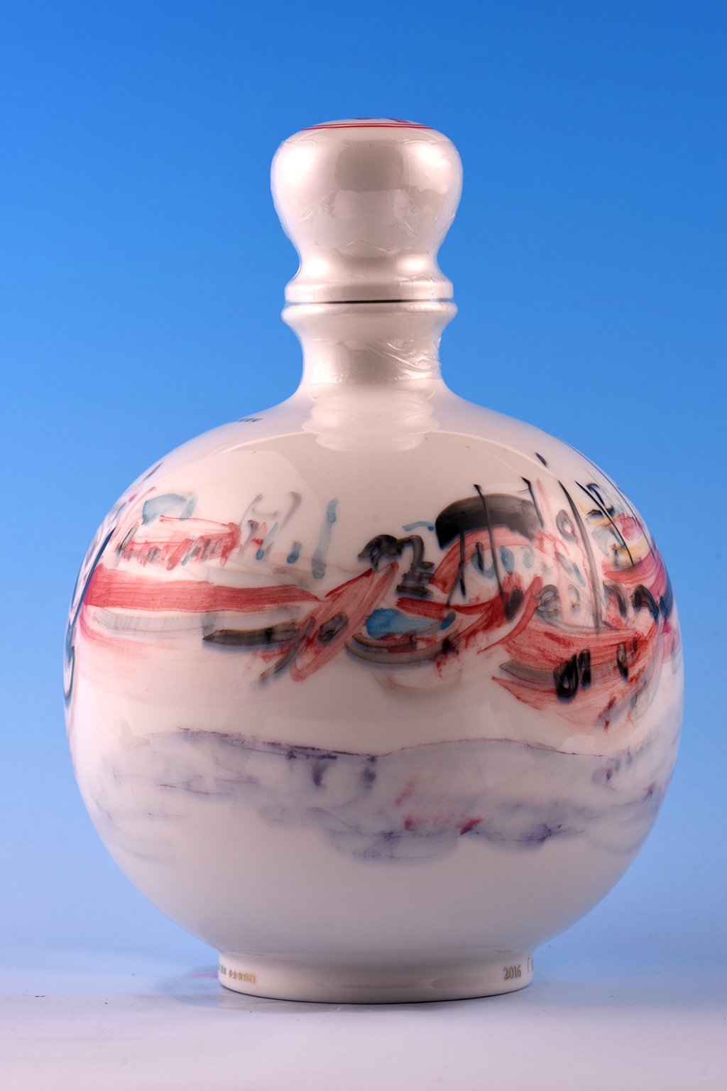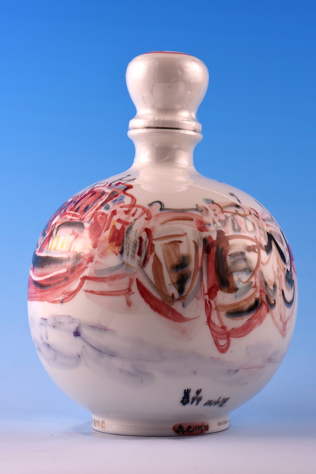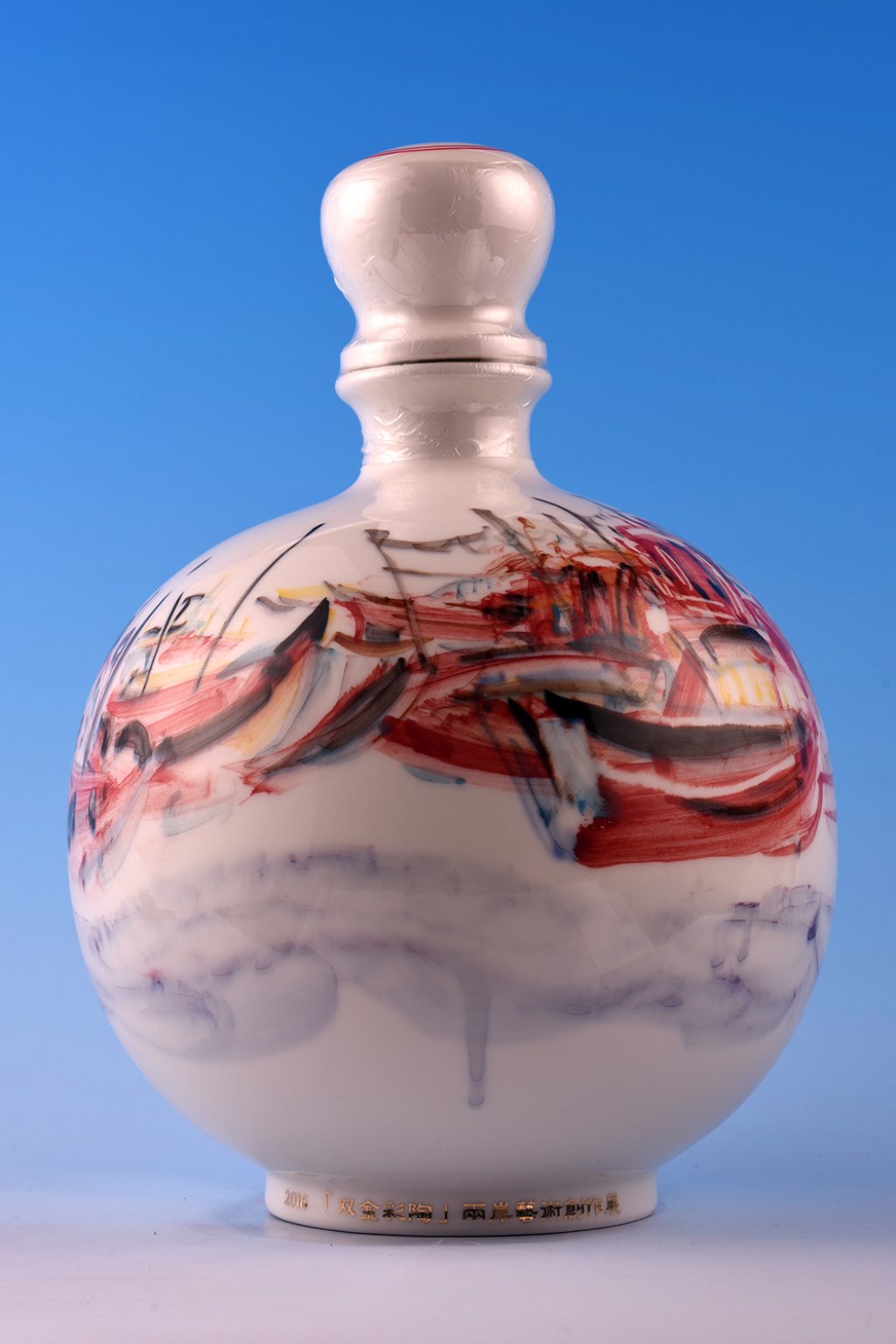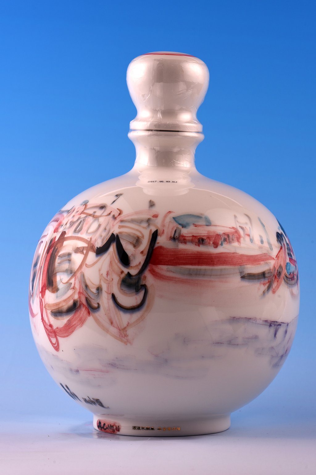 張春卉手繪瓷瓶-漁歌-清風入夢[高粱酒]彩墨藝術家畫家精品藝術鑑價美術館典藏金門陶瓷廠釉下燒禮品紀念